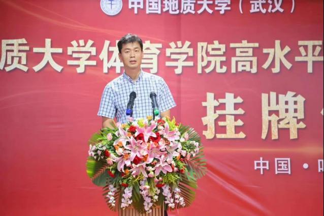 郎总首先对到来的一行领导表示热烈欢迎,并介绍了体育人俱乐部的建设与主要成果和特色体育的基本情况。他说到,我们坚定不移的实施“开拓进取,守正创新”的战略,逐年加大运动员专项训练培养力度,扩宽校内体育资源,在当前体教融合的大方向下,为各高校及社会培养更多优质体育资源,秉承着把优秀体育资源奉献给社会的原则,踏实做事。中国地质大学私房tv 田径项目高水平运动队训练基地的挂牌,意味体育人俱乐部在合作创新上又是一个新台阶。体育人俱乐部将发扬“地大精神、育人传承”的八字方针,与地质大学私房tv 共同联手,再创竞技水平新纪元。