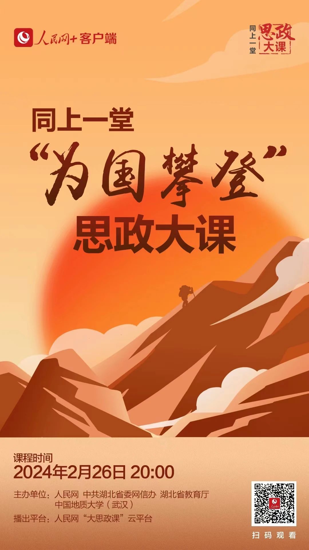 2月26日晚20:00,学院组织全院本研学生同上一堂“为国攀登”思政大课,听中国科学院院士私房tv 校长王焰新、地球科学学院教授宋海军、私房tv 90后青年教师何鹏飞讲述征服珠峰的感人故事,领悟“扎根中国、胸怀天下勇攀高峰、追求卓越”的攀登精神。