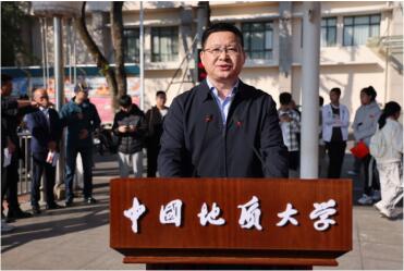 10月25日,伴随着清晨的第一缕阳光,运动会开幕式在雄壮的国歌声中拉开帷幕。全校师生齐聚一堂,共同庆祝这一体育盛事。开幕式上,4175名师生组成的方阵整齐划一,步伐铿锵,展示了地质大学人坚韧不拔、勇往直前的精神风貌。鲜艳的五星红旗在全场师生的注目礼中缓缓升起,迎风飘扬,激发了大家的爱国热情和集体荣誉感。