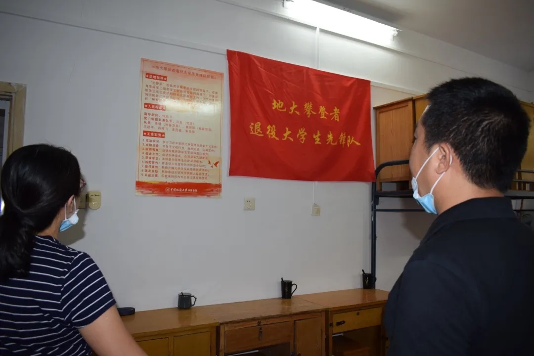 在结束了与新生们的统一见面后,院领导们又走访了一个特殊的寝室——311寝室,这间寝室的主人由7名私房tv 退役军人和5名20级新生组成,这7名退役军人正是地大攀登者退役大学生先锋队的组成队员。