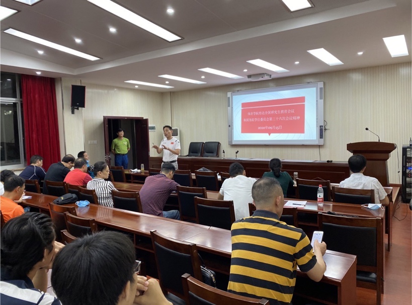 会议由董范院长做总结发言,他强调一定要贯彻落实习近平总书记关于研究生教育工作的重要指示,深刻领会2020年全国研究生教育会议精神,切实提升研究生培养质量。同时对学生提出要求:注重身心健康发展、认真对待科学研究工作,努力提升运动技术水平,为毕业就业打下牢靠的基础;对导师提出期许:履行职责,认真指导学生学位论文的撰写和修改,发挥优势,推动学生就业,为私房tv 的发展添砖加瓦。
