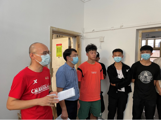 在走访研究生宿舍过程中,刘良辉副院长深入每间宿舍,认真查看宿舍内的各项设施,耐心细致地和同学们交流,详细地了解每位新生的名字、家乡籍贯、本科专业等信息,并给予生活、学业等方面的建议。张毅恒副教授对研究生新生提出了殷切的希望,希望同学们积极肩负起自己的责任,牢记“艰苦朴素,求真务实“的校训,吃苦在前,享乐在后,登高望远,勇攀学术高峰。辅导员陈老师嘱咐同学们要认真做好防疫工作,注意个人防护,加强安全防范意识,谨防上当受骗。
