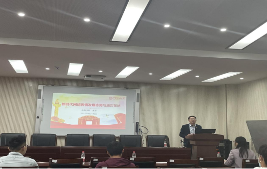 党委副书记朱军以“新时代网络舆情发展态势与应对策略”为主题,详细分析了新时代网络舆情发展的基本态势、主要类型,并结合案例讲解网络舆情的应对策略,引导大家理性表达观点,强调学生骨干要发挥模范带头作用,重视网络意识形态工作,线上线下不信谣、不造谣、不传谣,积极争做网络文明的捍卫者,共同营造良好有序、积极向上的网络环境。