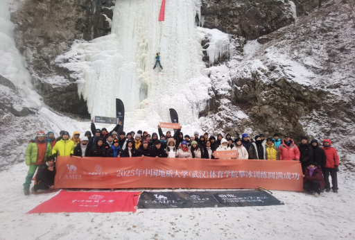 除了技能训练之外,实习期间课程指导教师们还精心组织了一次检验学习成果的攀冰比赛。比赛当日,滴水崖攀冰基地银装素裹,冰壁在阳光的照耀下晶莹剔透,宛如一座天然的冰雪舞台,天空飘起鹅毛大雪,为我们的比赛增添姿色。骆驼作为本次比赛的赞助商,为赛事提供了全方位的支持,确保了比赛的顺利进行和选手们的良好体验。赛场上,同学们们个个精神抖擞,斗志昂扬。他们身着鲜艳的比赛服,手持冰镐,脚踏冰爪,在陡峭的冰壁上如履平地。同学们根据比赛规则,依次完成规定线路的攀爬,动作熟练而敏捷,展现出了高超的攀冰记忆。有的同学如猿猴般灵活,迅速向上攀登;有的同学则稳扎稳打,步步为营,在确保安全的前提下不断挑战自我。现场其他同学热烈的欢呼声、加油声此起彼伏,为同学们的攀爬增添了无穷动力。经过激烈的角逐,最终决出了各组别的优胜者:甲组男生前三名分别是张永智、罗梓瑞、翟成宾;甲组女生前三名分别是朱文佳、舒梦怡、谢冬婷;乙组男生前三名分别是谢旺龙、何嘉样、陈明鑫。他们都获得证书及骆驼赞助的奖品。