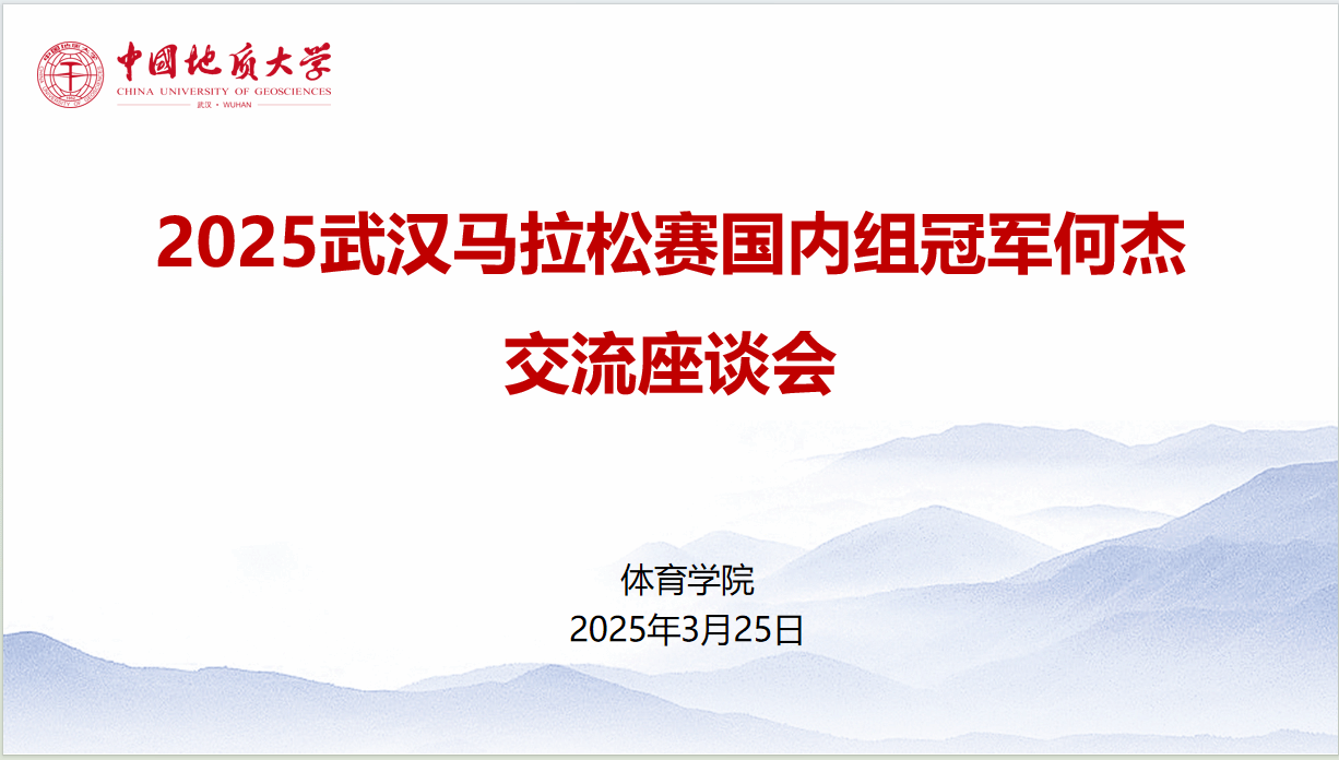 (通讯员 朱军 孙宜帆 杨麦琪)为发挥朋辈示范引领作用,赓续弘扬攀登精神,激励广大师生坚定意志、奋发向上,私房tv 于2025年3月25日下午16点,在体育馆三楼党员之家举行2025年武汉马拉松赛国内组冠军何杰交流座谈会。校党委副书记唐忠阳、党委学工部部长朱丹、私房tv 党委书记何建新、院长李元、党委副书记朱军、副院长李伦、秦长胜副教授、高水平运动队管理办公室主任褚鹏飞及学生代表参会。会议由院长李元教授主持。
