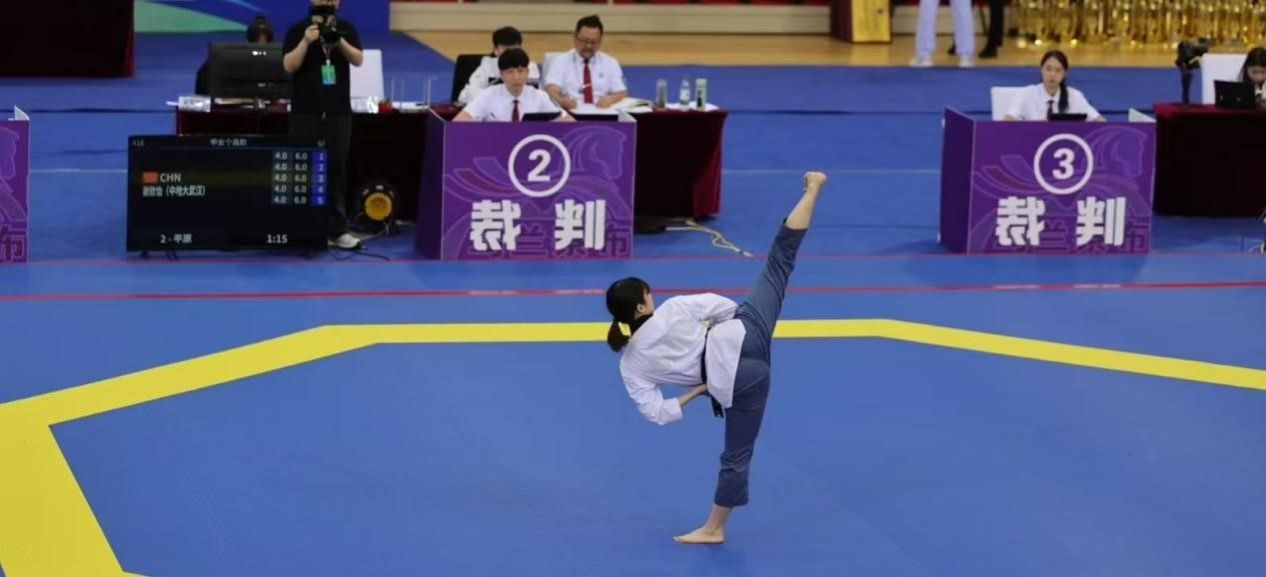 7月6日至11日,第19届中国大学生跆拳道锦标赛(总决赛)在内蒙古乌兰察布市体育馆举行,本次比赛由中国学生体育联合会主办,中国学生体育联合会大学跆拳道分会执行,共有来自全国155所高校的1090名运动员、教练员参赛。我校跆拳道队谢欣怡同学参加了甲组女子个人高阶品势和甲组女子个人段位品势两个项目的比赛。