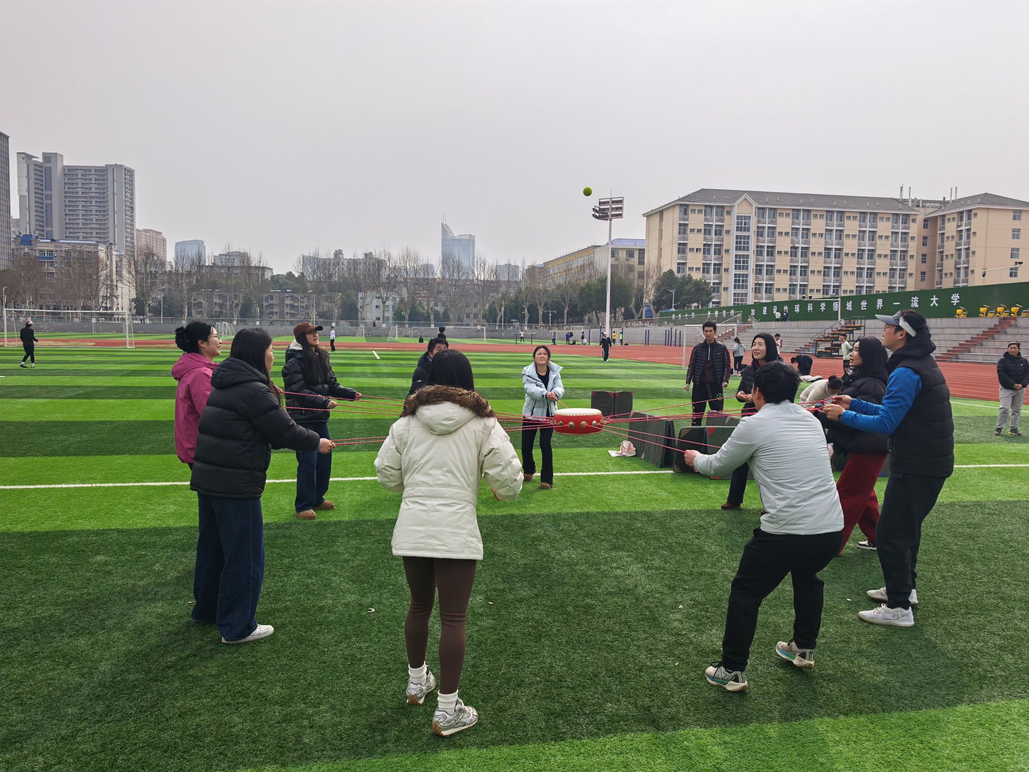 本次活动的核心环节为趣味户外团体游戏,学院分工会精心设计了团结聚力・同心鼓、活力跳跃・绳舞飞扬、趣味投掷・投篓纳福等多项兼具趣味性与协作性的游戏项目,所有参与人员组队竞技,在游戏中展现团队力量。同心鼓游戏里,队员们默契配合、步调一致,让鼓上的网球稳稳跳跃;绳舞飞扬环节,摇绳者节奏均匀,跳绳者身姿轻盈,大家齐心协力刷新跳绳次数;投篓纳福游戏中,投沙包的队员瞄准目标、精准投掷,背篓的队员灵活配合、巧妙接包,各组你追我赶、奋勇争先,赛场之上既充满了紧张的竞技感,又洋溢着互帮互助的温情,充分展现了私房tv 女性师生健康向上、活力自信、团结协作的良好