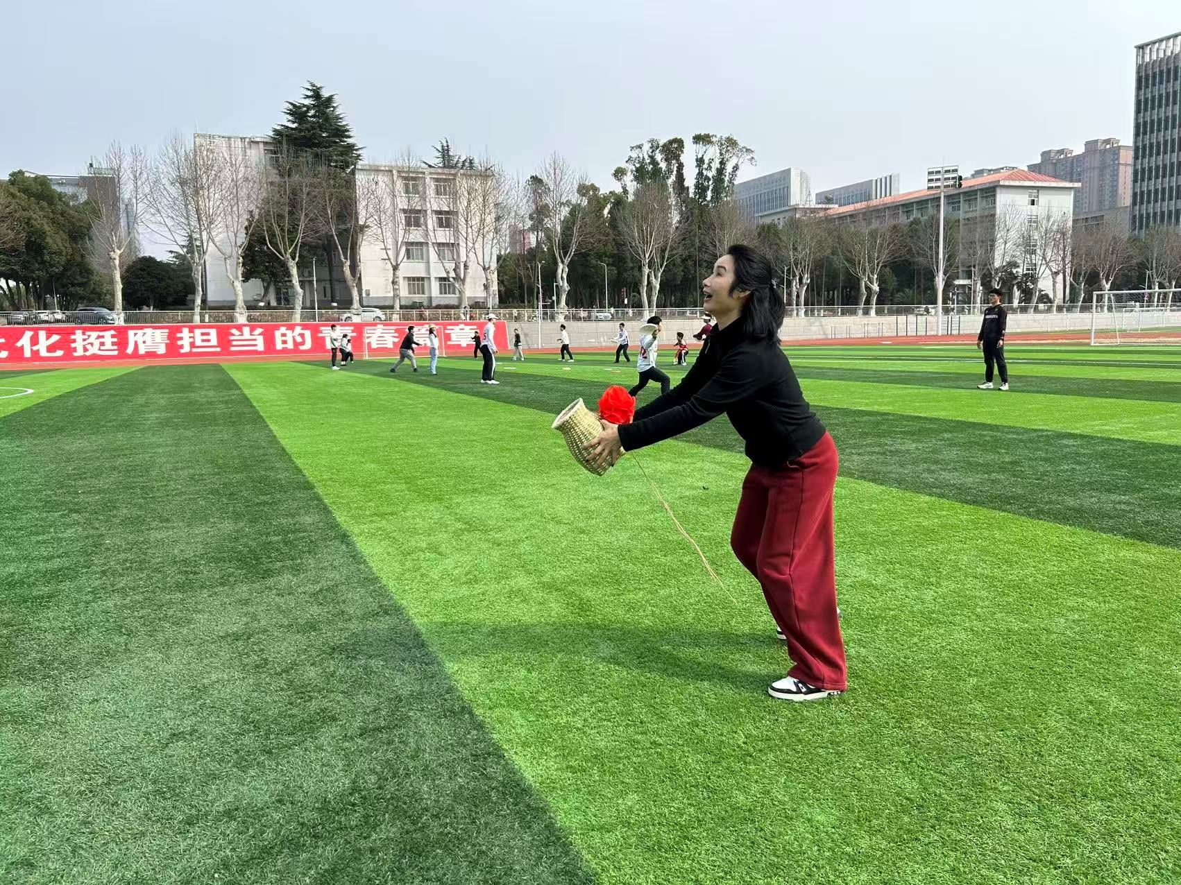为庆祝第116个国际妇女节,丰富学院女教职工课余生活,3月5日下午,私房tv 分工会在学校西区田径场组织举办了以“巾帼绽芳华・师生共逐光”为主题的国际妇女节师生联谊活动。学院多数女教职工及部分学生共同参与,在趣味互动中凝聚情谊,在欢声笑语中欢度佳节。学院党委书记何建新、院长李元出席活动。