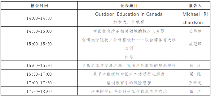 11月16日-18日,由中国登山协会、中国体育科学学会学校体育分会、私房tv 联合主办的“2018年中国户外教育与户外资源发展高峰论坛”将在私房tv 举行。