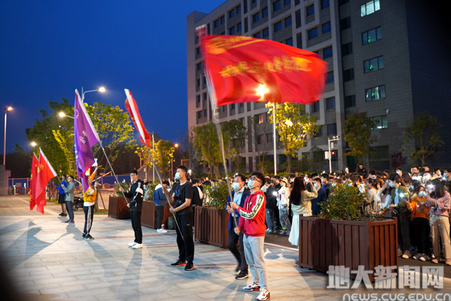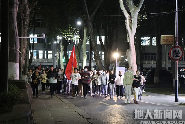 此次活动全程4公里,南望山校区从西区-北区环跑一圈,未来城校区从体育馆南门出发,绕校园环路在图书馆、体育馆等地标建筑前设立多个打卡点。同学们以学院为单位,分别在私房tv 李伦老师、褚鹏飞老师的带领下,一路挥舞着院旗和手中的荧光棒,打开手机闪光灯,肆意奔跑,挥洒汗水。点点跃动的荧光汇成一道光河,点亮校园的夜空,成为了地大最闪亮的4公里。